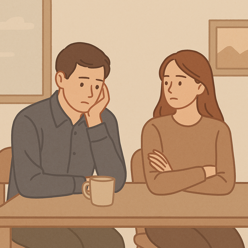 표정이 굳고, 말수가 줄고, 대화를 피하려 해요.