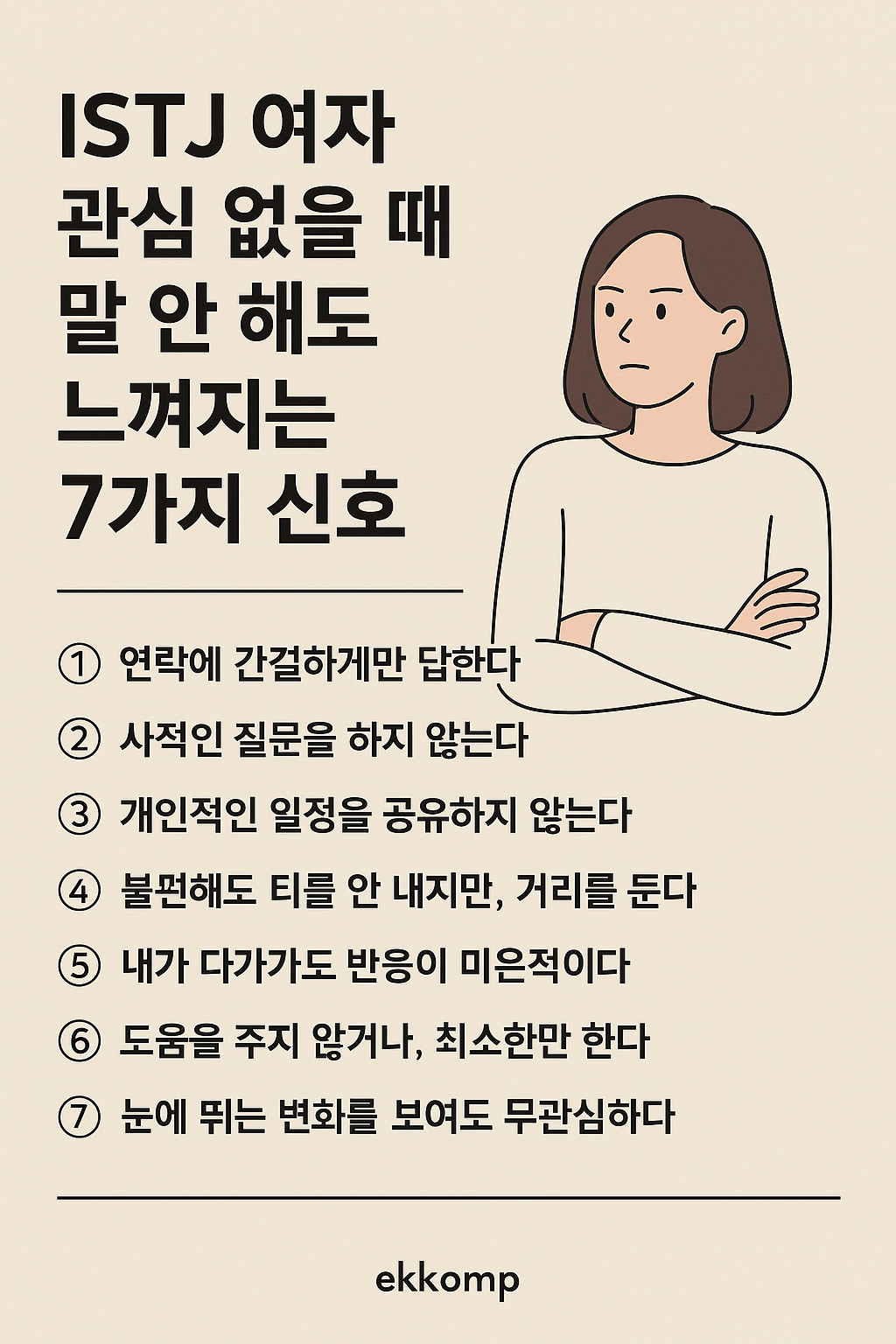 오늘은 ISTJ 여자가 관심 없을 때 나타나는 행동들을 정리해볼게요.